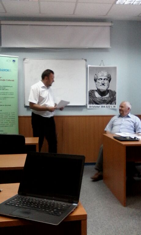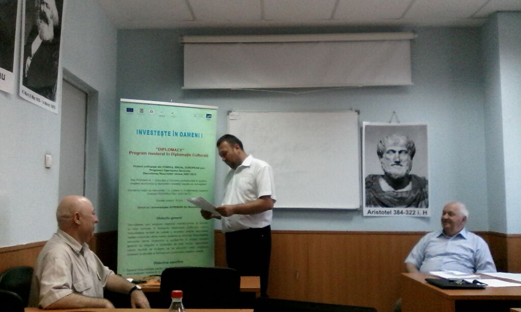 Domnul profesor univ. Dr. Leonida Moise, manager în cadrul proiectului Diplomacy – Program masteral în Diplomație Culturalăîn deschiderea Mesei Rotunde a prezentat câteva repere în domeniul evoluției desfășurării proiectului și etapele pe care acesta l-a parcurs. În cadrul acestei prezentări, domnul manager a explicat stadiul de implementre a activităţilor proiectului realizate, atât pentru dezvoltarea calitativă a resurselor umane şi a comunicării dintre mediul academic şi cel economic, cât şi pentru creşterea gradului de integrare a absolvenţilor programului de studii masterale în Diplomație Culturală.